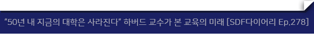Q. 지난해 SBS D포럼에서 스탠퍼드 대학 페이페이 리 교수는 지금 이 순간을 산업혁명 이후에 교육을 재설계할 수 있는 ‘한 세기에 한번 올까 말까 한 기회’라고 표현했습니다. 이러한 견해에 대해 어떻게 생각하시는지 동의한다면 가장 시급하게 변화해야 할 것은 무엇이라고 생각하시나요? |